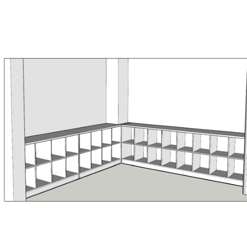 (2560+2465)*400*800mm, 材料免漆板,材料经过边缘抛圆及防虫、防腐等处理,符合GB18580-2001 E1级标准,甲醛释放量≤1.5mg/L,无门。