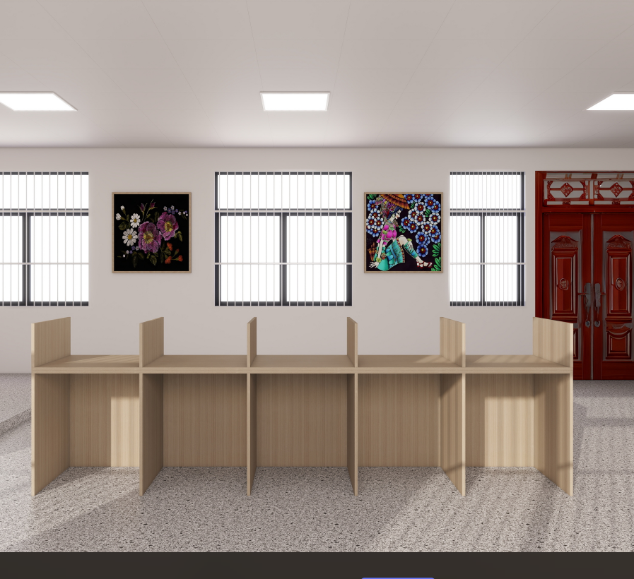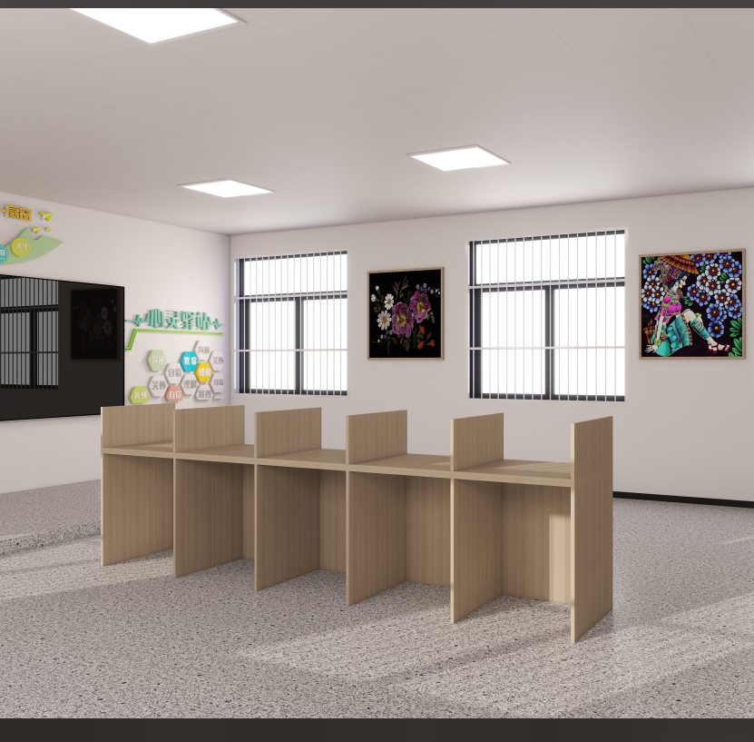 欣金泰,4.88*0.6*0.75米,桌上挡板高0.45米,总高1.2米,免漆板,枫木色
