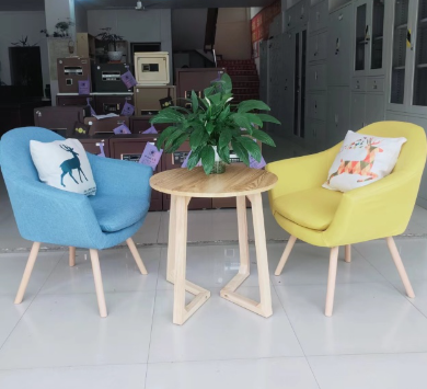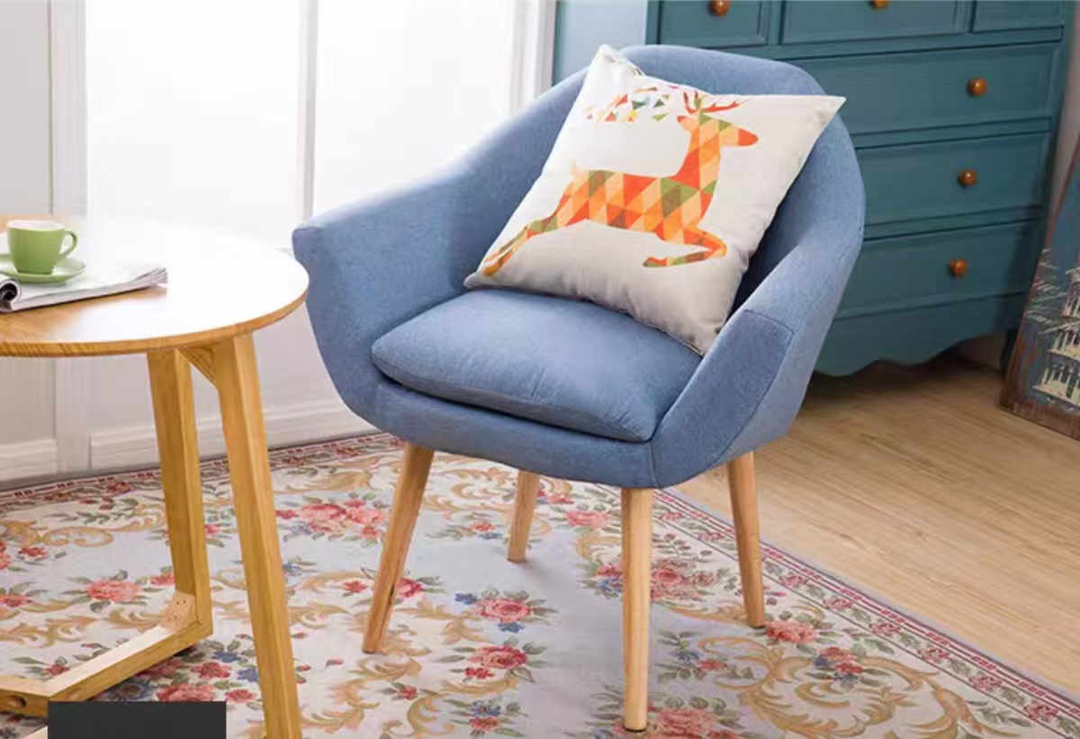 椅子:72*47*76cm,实木+麻布,蓝色、黄色,填充高回弹海绵